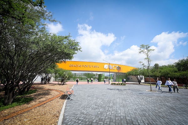 La inversión de 120 millones de pesos permitió construir un acceso moderno con pórtico, explanada, 1.42 km de ciclovías, andadores, palapas, juegos infantiles monumentales y áreas de convivencia.