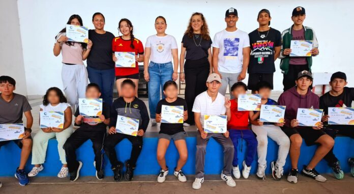 La regidora Anel Torres; el titular de la COMUDES, Pedro Ortega; y la entrenadora de la academia deportiva de natación, Ivonne Medina, entregaron las constancias de participación a los y los atletas infantiles y juveniles que asistieron al workshop con la intención de mejorar su técnica y empezar a labrar una carrera deportiva exitosa.