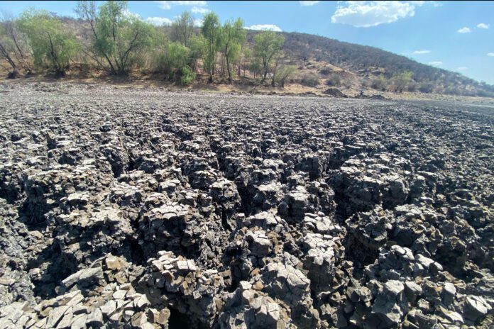 Purísima del Rincón, Gto., 7 de mayo de 2025.- La presa de Cañada de Negros ubicada en el municipio de Purísima de Bustos reporta una sequía extrema, sólo con el tres por ciento de almacenamiento de agua.