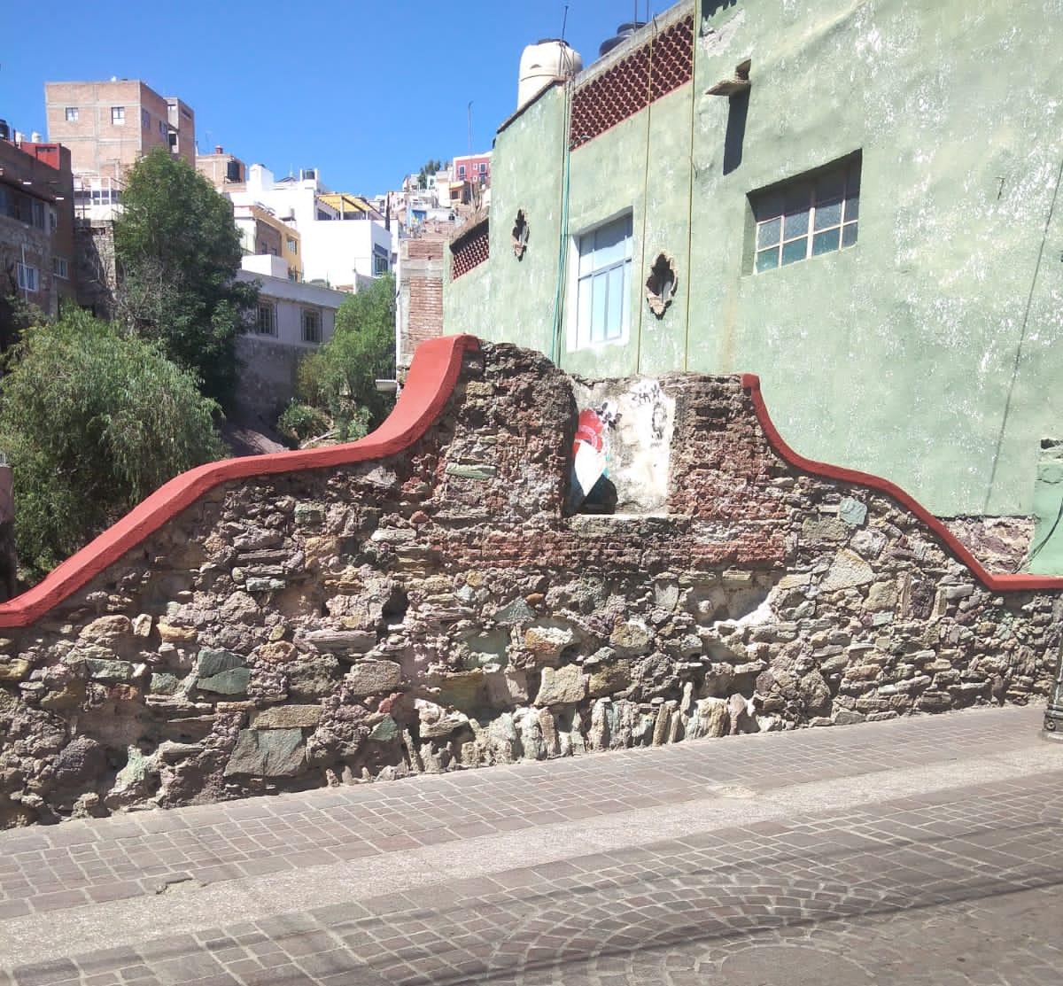Guanajuato, Gto., 16 de abril de 2023.- Mediante el programa Revitalización de la Imagen Urbana, el Gobierno Municipal de Guanajuato comenzó labores para remover graffiti en la calle Sangre de Cristo y el puente de los desterrados.
