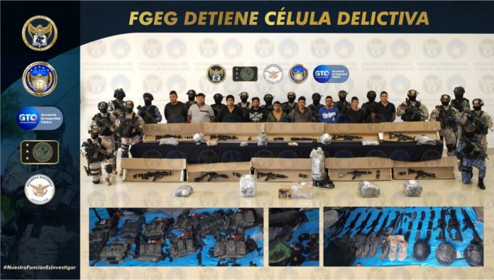 En una intervención táctica, encabezada por elementos del Grupo de Reacción Inmediata (GERI) de la Fiscalía General del Estado, en coordinación con el Grupo Táctico Guanajuato (GTO) de la Secretaría de Seguridad Pública del Estado, Ejército Mexicano y Guardia Nacional, se logró desarticular una célula criminal que operaba en la zona y aseguraron armas de asalto, equipo lanza llamas, cargadores y equipo táctico.