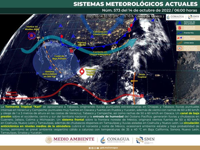 Para más información sobre la Tormenta Tropical “Karl” en el Golfo de México, consulta los avisos del Servicio Meteorológico Nacional a través de: https://smn.conagua.gob.mx/es/pronosticos/avisos/aviso-de-ciclon-tropical-en-el-oceano-atlantico