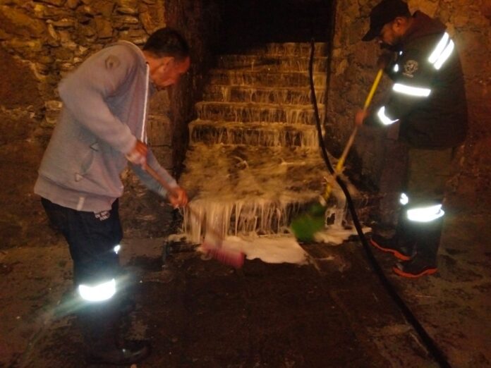 Guanajuato, Gto., 20 de octubre de 2025.- Con motivo del Festival Internacional Cervantino, el Gobierno Municipal de Guanajuato mantiene un operativo especial de limpieza en plazas, calles y callejones, para garantizar una ciudad limpia y en óptimas condiciones durante el desarrollo del evento cultural más importante del país.
