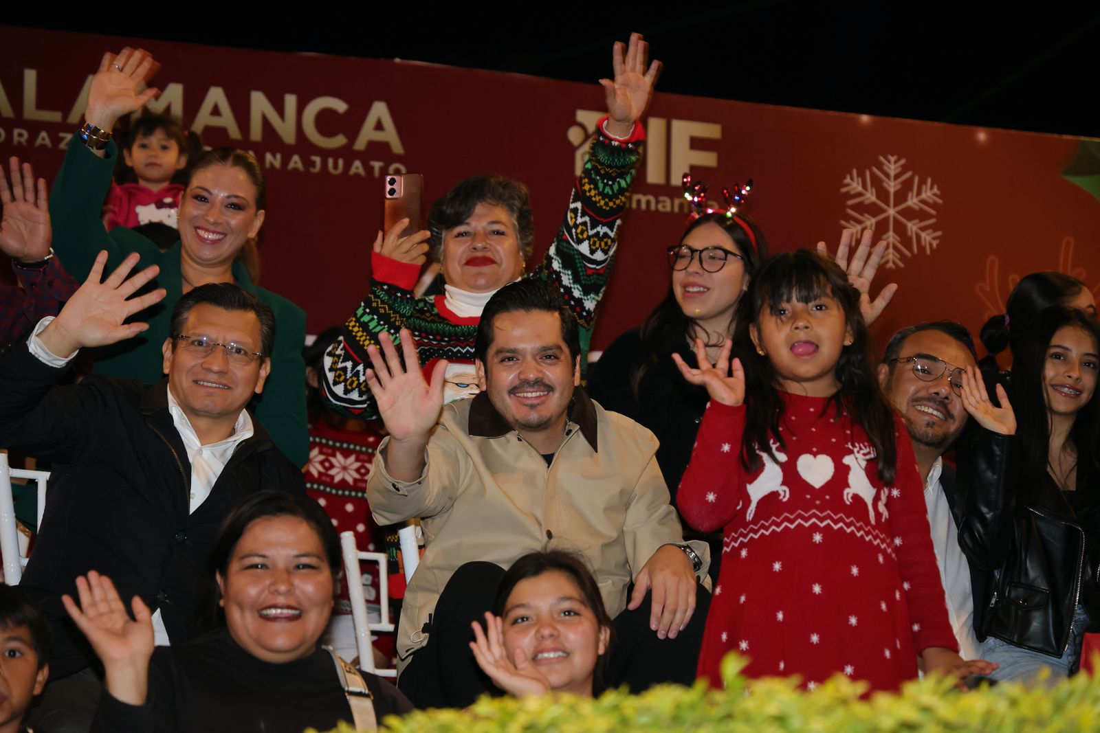 El encendido del árbol de Navidad marcó uno de los momentos más emotivos de la jornada, iluminando la Plaza Cívica Miguel Hidalgo y simbolizando el inicio oficial de las celebraciones decembrinas en Salamanca.