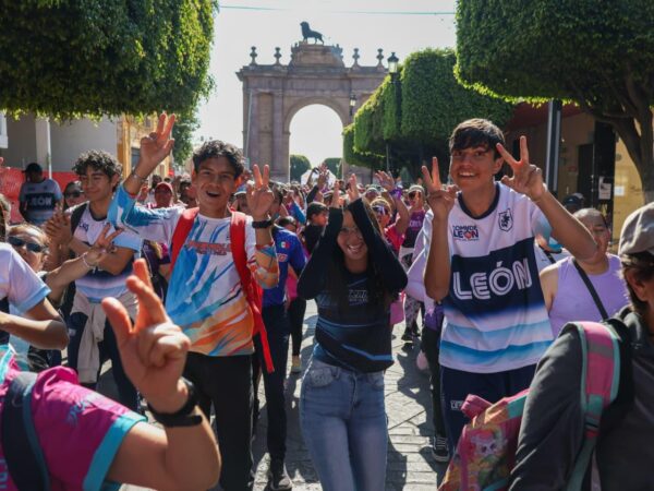 La caminata recreativa que inició en el emblemático Teatro del Bicentenario recorrió las principales vialidades del centro de la ciudad hasta llegar al Palacio Municipal de León, donde las y los participantes cruzaron la meta.