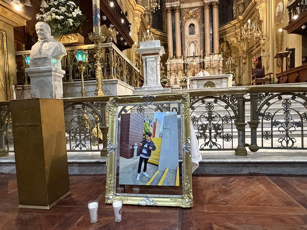 Al pie del altar, colocaron un cuadro con una foto de Mateo donde estaba sonriendo. Además de dos velas, y unidos en oración, pidieron por su eterno descanso.