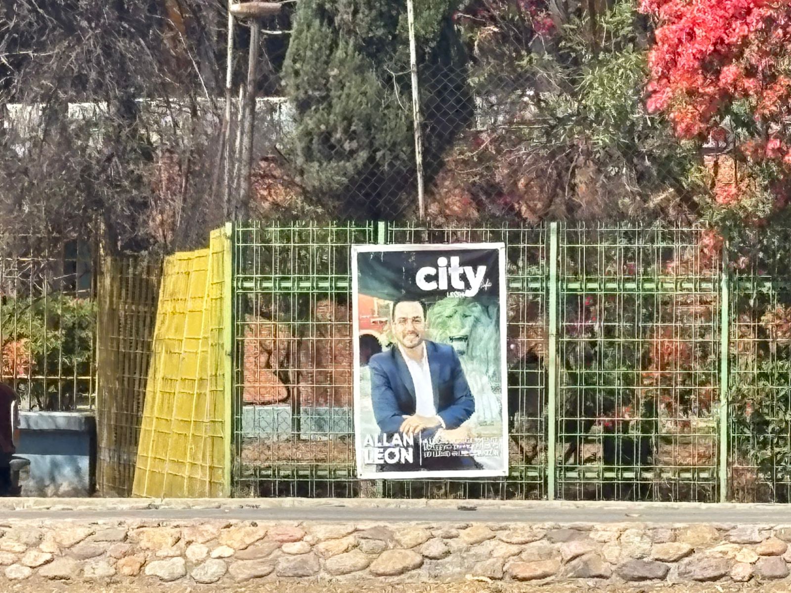 Y es que la portada de una revista donde aparece Allan León en la Fuente de los Leoneses, fue colocada en pendones en bulevares como el Miguel Hidalgo casi esquina con las Torres, Timote Lozano, incluso, al exterior del Parque del Árbol, instancia municipal.