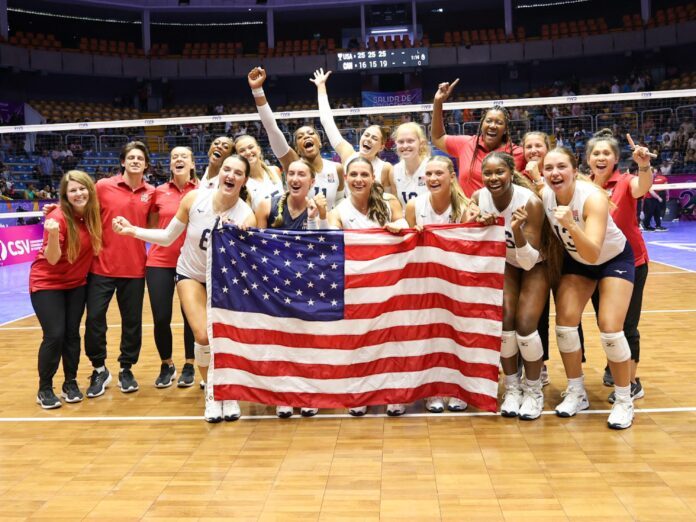 León, Gto., 1 de agosto de 2025.- Contundentes, estratégicas y poderosas al momento de pelear cada punto en la red o en la duela, Estados Unidos hizo de su debut panamericano el sueño americano al coronarse campeonas luego de vencer en tres sets al representativo de Canadá con parciales de 25-16, 25-15 y 25-19.
