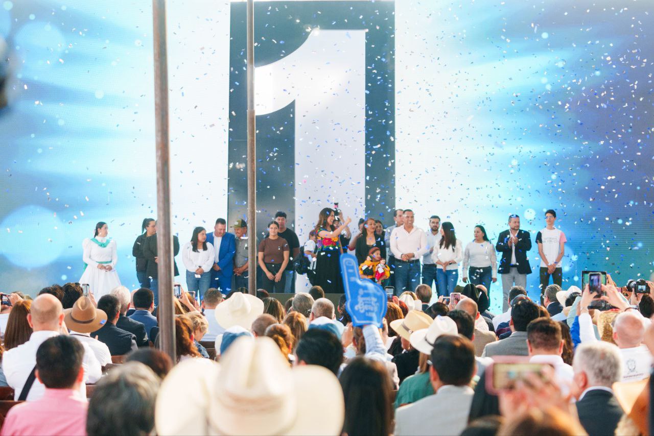 La Gobernadora estuvo respaldada por la población del noreste y acompañada de comunidades indígenas; madres buscadoras; líderes empresariales; Tere Jiménez, Gobernadora de Aguascalientes; miembros del Gabinete legal y ampliado; legisladoras y legisladores; y representantes de los diferentes sectores de la sociedad.