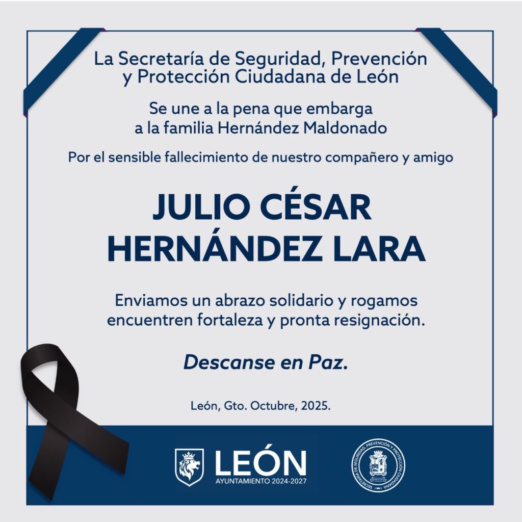 León, Gto, 3 de octubre de 2025.- Un elemento de la Policía Vial murió la tarde de este viernes en León cuando participaba en el operativo “Ola Verde”, que es para el traslado de órganos.