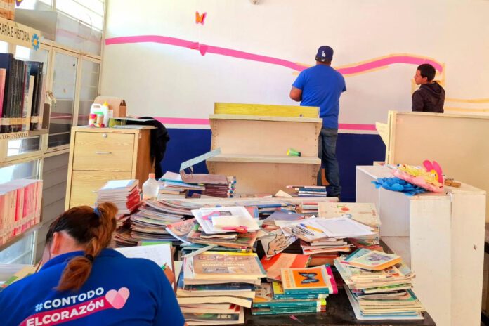 Asimismo, se estarán realizando acciones de reparación y mejoramiento en las instalaciones de la biblioteca “Margarito Vázquez Navarro”, en el fraccionamiento Norias de Sopeña.
