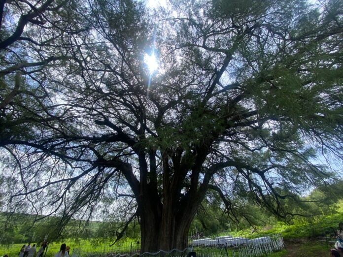 “Es un árbol muy longevo, el más grande del estado de Guanajuato, tiene 14 metros de ancho, una altura aproximada de 28-30 metros, los años más o menos entre 800 pasados”, comentó.