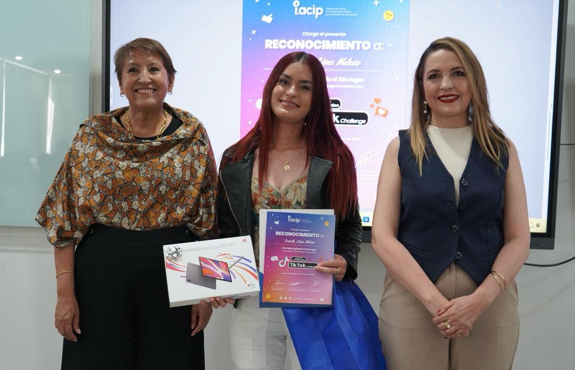 “Hoy con esta convocatoria que realizamos para este concurso en materia de Tik Tok cuidando la privacidad de las personas, apuntalamos al desarrollo y creatividad, esa comunicación en este lenguaje que ustedes tienen para generar empatía con los jóvenes. Les invito a seguir apuntalando la importancia del cuidado de nuestros datos personales, hoy sabemos que ustedes nacen con la tecnología, son nativos digitales que interactúan en el ciberespacio con plataformas, con herramientas, pero algo en lo que ustedes se comunican es a través de las redes sociales que son un espacio de comunicación para dar a conocer alguna información, algún tema, alguna comunicación, pero qué creen también dan a conocer mucha información de su vida personal”, dijo la Comisionada presidenta en su mensaje.