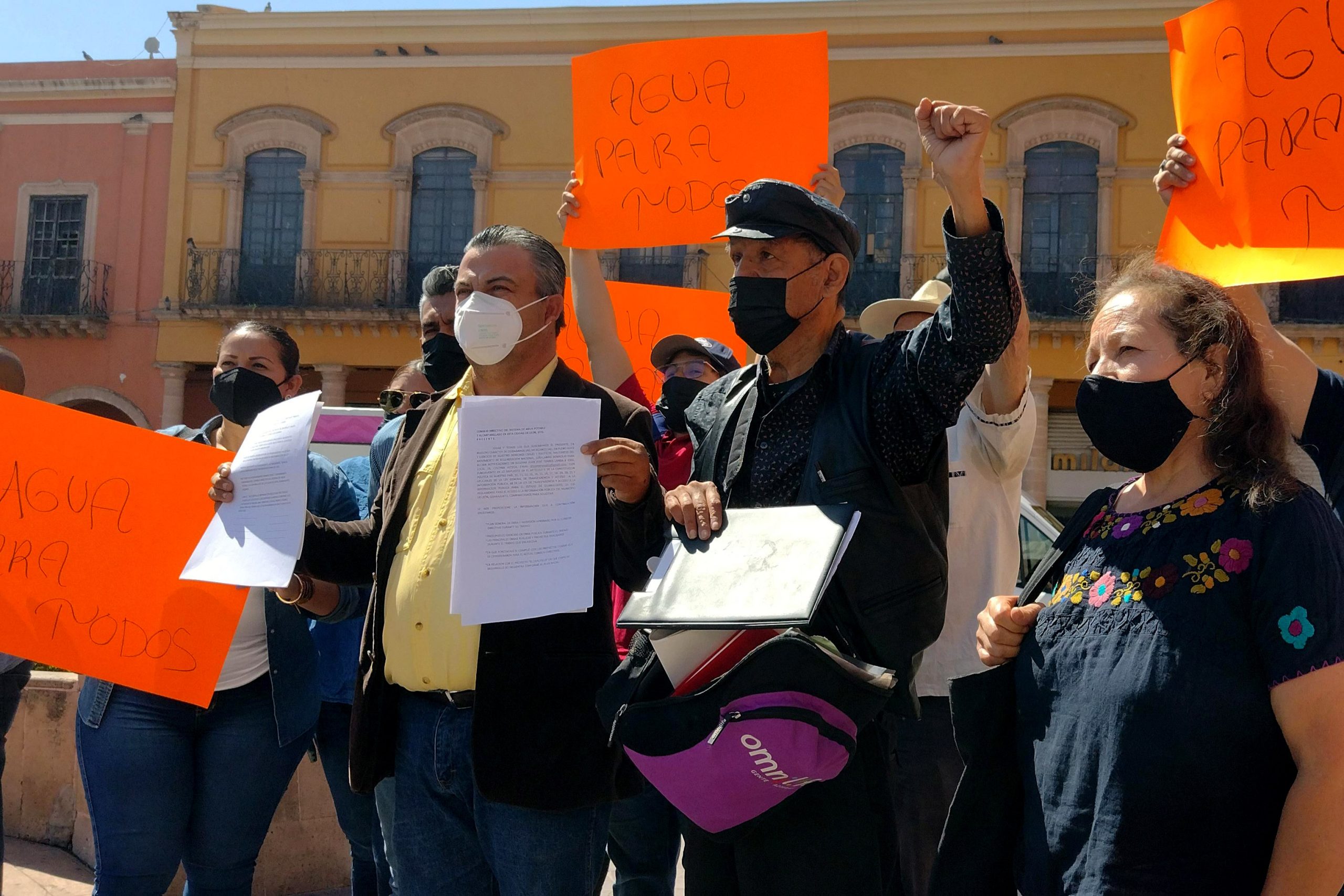 La manifestación de ciudadanos, quienes se identificaron como integrantes del Comité de Base de Morena, llevó pancartas donde pedían “agua para todos” y surgió a iniciativa de “contraloría ciudadana” luego de que el Ayuntamiento de León aprobara al Consejo Consultivo de SAPAL donde “no hubo una verdadera representación ciudadana”, expresó el vocero del movimiento Valente Hurtado.