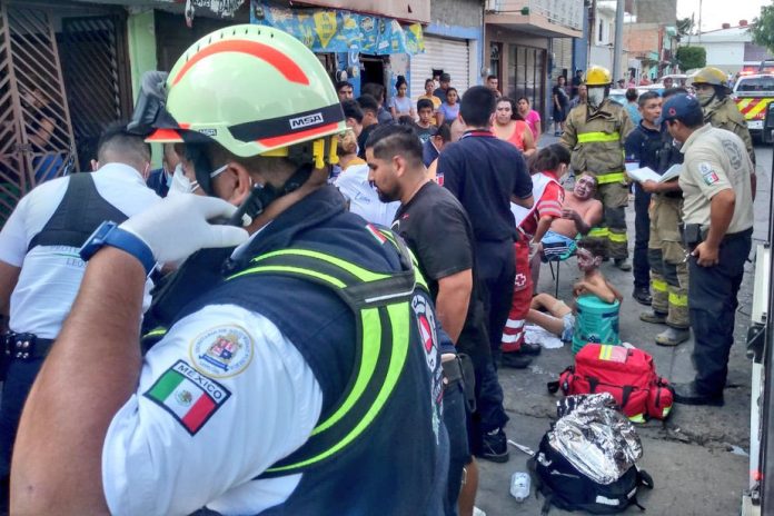 León, Gto., 19 de mayo de 2022.- Una explosión dentro de una vivienda ubicada entre las calles Tepalcatepec y Vicente Valtierra, de la colonia La Brisa, dejó como saldo nueve personas heridas. Hay un adulto mayor que va grave debido a lo profundo de las lesiones.