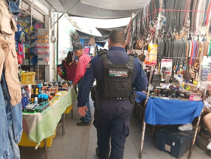 Como parte de estas acciones, elementos de Policía Municipal realizaron un operativo de vigilancia “Pie Tierra” en el callejón San José y calles aledañas de la zona centro.