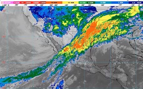 Además, las corrientes en chorro polar y subtropical provocarán fuertes rachas de viento con posibles tolvaneras sobre la Mesa del Norte y la Mesa Central, incluido el Valle de México, así como temperaturas mínimas de hasta -10 a -5 °C con heladas.