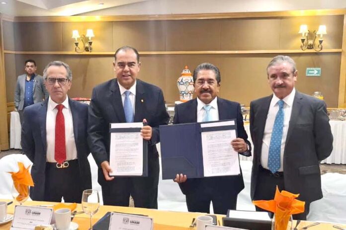 León, Gto., 7 de octubre de 2023.- La Fundación UNAM y el Colegio Estatal de Notarios de Guanajuato firmaron un convenio de colaboración interinstitucional y de cooperación, con el objetivo de fortalecer la formación y promoción académica, así como la asesoría e investigación jurídica.