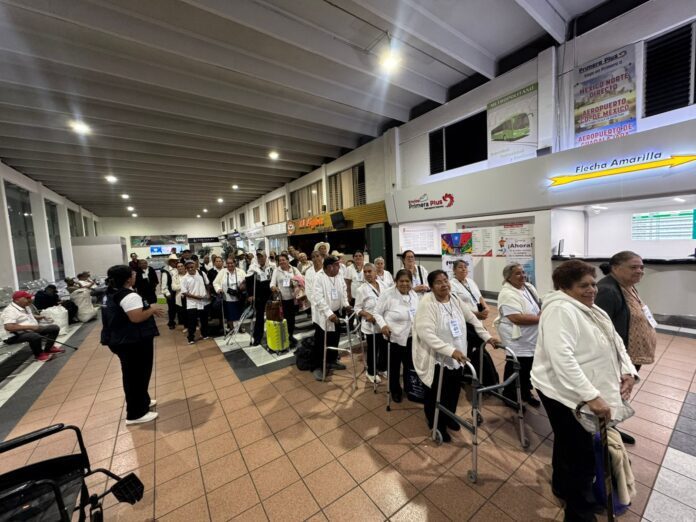 Guanajuato, Gto., 13 de mayo de 2025.- El Gobierno de la Gente, a través de la Secretaría de Derechos Humanos, acompañó a un grupo de 43 adultos mayores procedentes de los municipios de Doctor Mora, Pénjamo, Uriangato, León, Abasolo, Huanímaro y Cortázar, a la embajada de los Estados Unidos en la Ciudad de México para realizar su trámite de visa y poder visitar a sus hijas e hijos migrantes que radican en la Unión Americana y que no han visto en más de diez años.