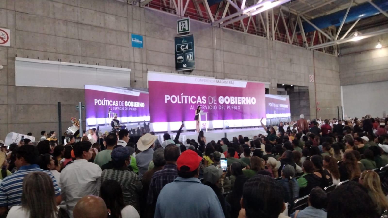 A su arribo a la sede de la conferencia, en Poliforum León, fue recibida con aplausos, porras, mantas y diversas muestras de afecto. Sheinbaum saludó a la gente proveniente de varios municipios del estado, quienes coincidieron en que Claudia Sheinbaum es la ideal para dar el siguiente paso en la trasformación del país y llevarla al estado de Guanajuato.