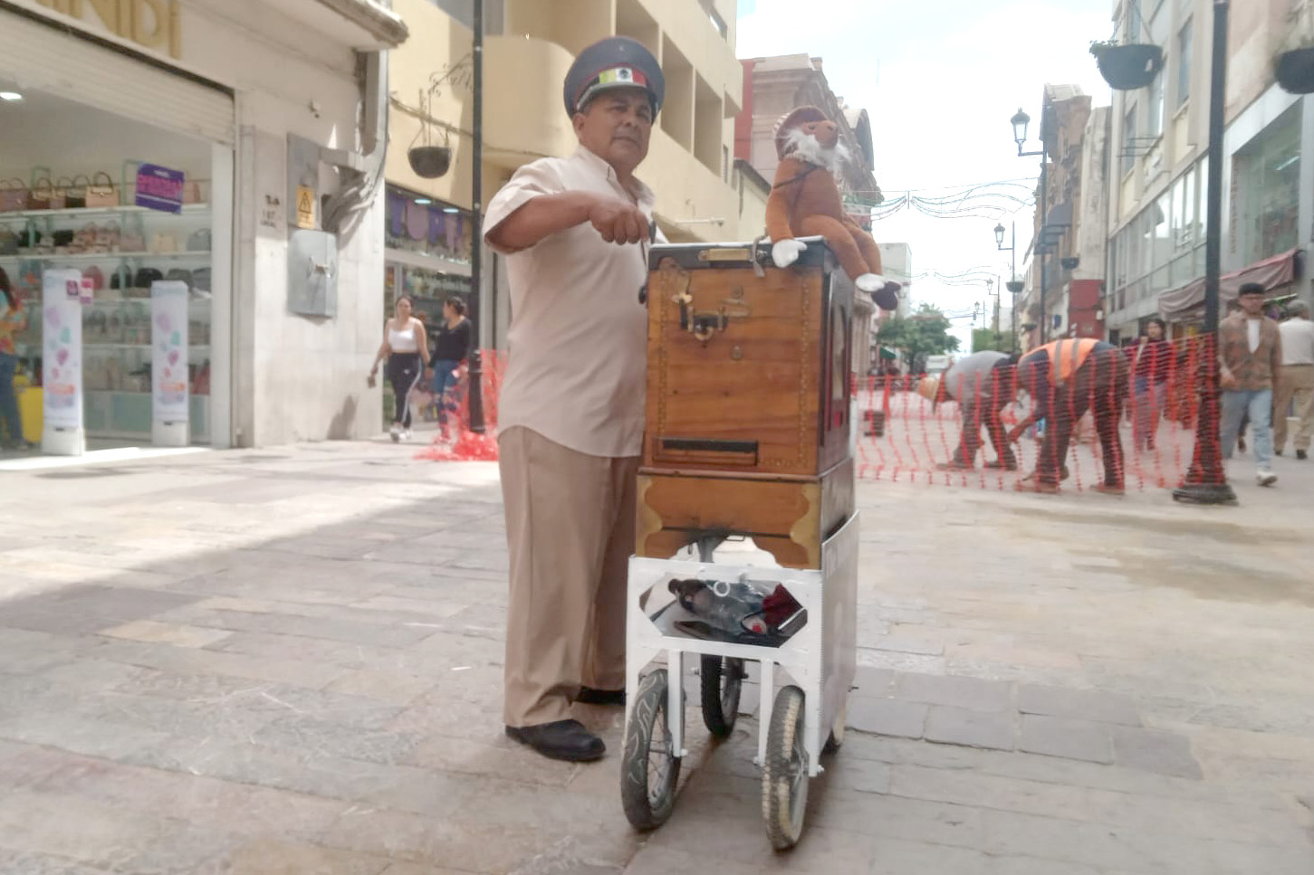 Toñito “saluda” a la gente, mientras Héctor no deja de mover la manivela que libera notas de colores sepia. La música se diluye por la calle Madero, entre pasos apurados. Algunos pasan sin mirar; otros atrapan un acorde al vuelo antes de seguir. Solo unos cuantos se detienen, dan una moneda. “Señor, señora, joven de azul… gracias.”