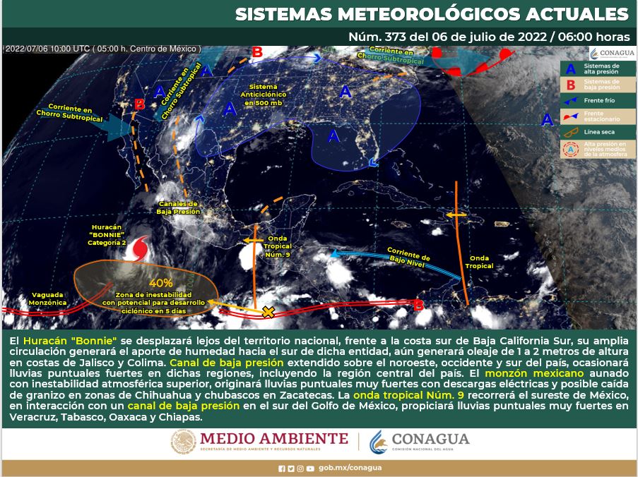 Para más información del Huracán “Bonnie” consultar los avisos del Servicio Meteorológico Nacional en: