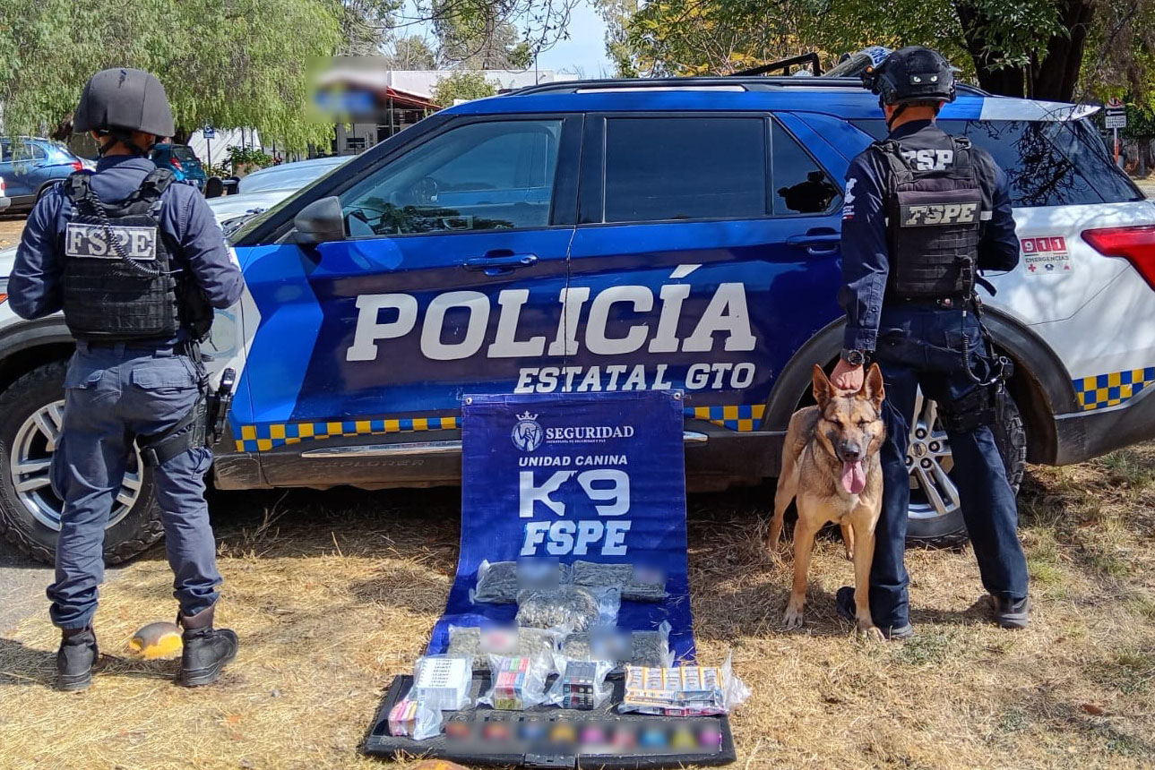 Guanajuato, Gto., 5 de febrero de 2026.- La Unidad Canina K9 de las Fuerzas de Seguridad Pública del Estado (FSPE) realizó el aseguramiento de 49 vapeadores con presunta marihuana durante un operativo de inspección en una empresa de paquetería.