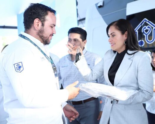 León, Guanajuato, a 15 de agosto 2023.- La presidenta municipal, Ale Gutiérrez entregó dos nuevas unidades móviles al titular de la Dirección de Salud Municipal, Juan Bustamante, para fortalecer uno de los programas emblema de la administración ‘Médico en tu casa’.