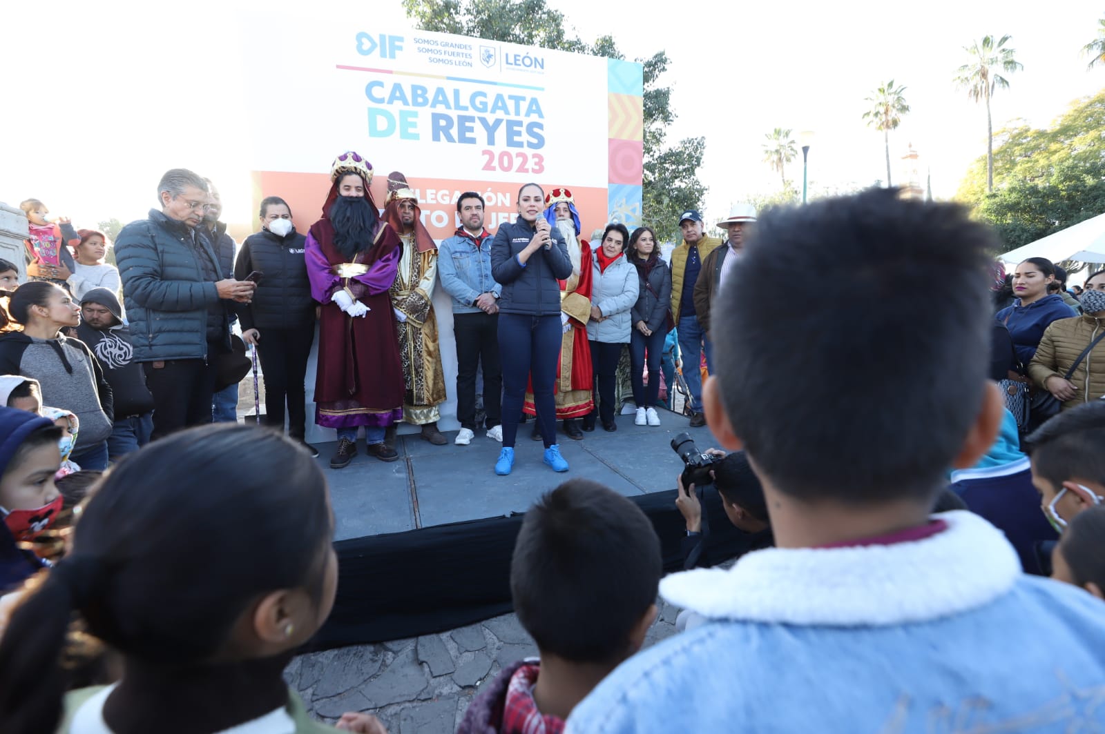 León, Gto., a 6 de enero de 2023.- Compartir la ilusión y la magia del Día de Reyes ayuda a fortalecer los lazos entre nuestra sociedad, razón por la cual, la presidenta municipal Ale Gutiérrez Campos, encabezó la tradicional Cabalgata de Reyes que visitó diferentes puntos de la ciudad.