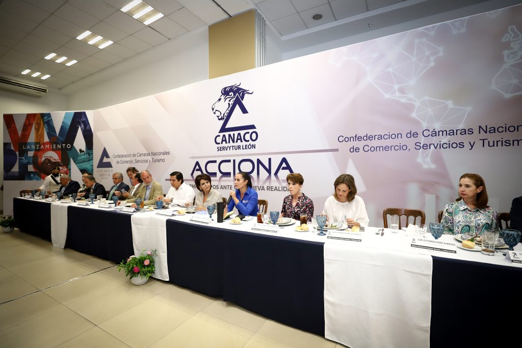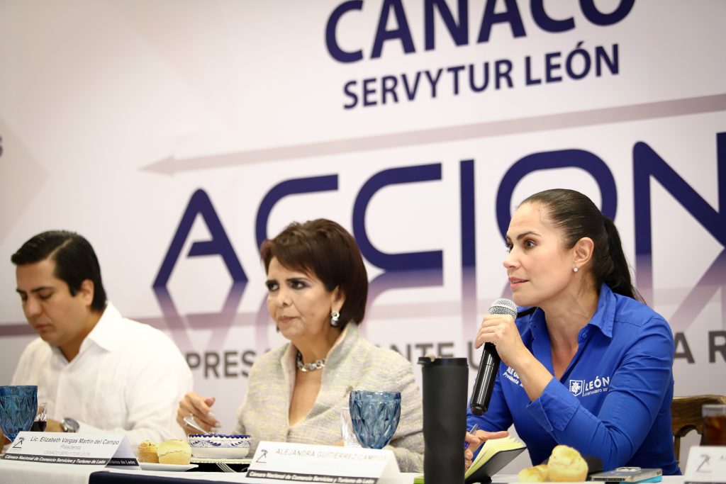 León, Guanajuato, a 27 de julio de 2022.- La presidenta municipal Ale Gutiérrez presentó a la Cámara Nacional de Comercio, Servicios y Turismo (CANACO Servytur) la campaña de VIVA LEÓN.