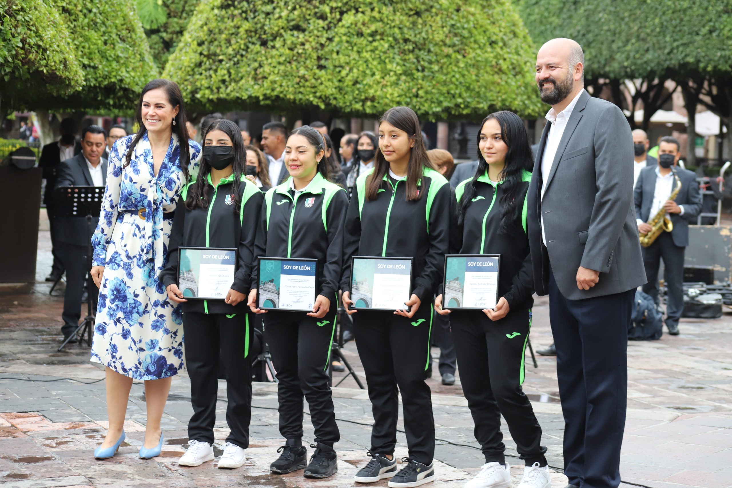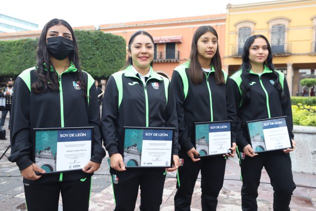 Yésica Yadira Hernández, Paola Lizbeth Núñez, Vanessa Andrade y Joselyn López García son deportistas del levantamiento de pesas, y que esta mañana fueron reconocidas con el galardón “Soy de León”.