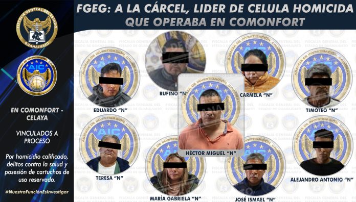 El fiscal informó que los delincuentes operaban en Celaya y Comonfor. Hoy se informó que el organismo público obtuvo la vinculación a proceso de Héctor Miguel “N” a quien identifican como “ex policía preventivo de Comonfort” y líder del grupo crimina. La vinculación a proceso fue por el delito de homicidio calificado.