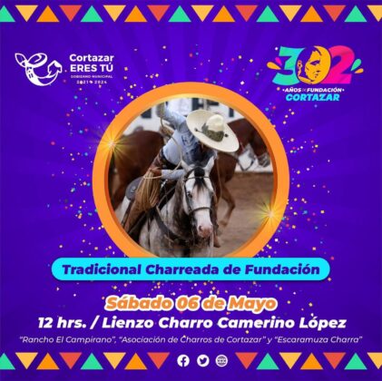 Al día siguiente, 06 de mayo, se realizará una Charreada por los 302 aniversario de la Fundación de Cortazar, de 12:00 a 17:00 horas, en el Lienzo Charro Camerino López. En este participarán los equipos: Asociación de Charros “Rancho El Campirano” “Asociación de Charros de Cortazar” y “Escaramuza Charra”, y en el programa musical estará presente Banda La Aferrada.