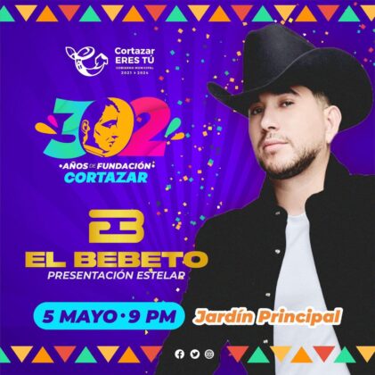 Cortazar, Gto., a 26 de abril del 2023.- El municipio de Cortazar celebrará este año sus 302 Aniversario de su fundación y, en este festejó, se anunció un programa de actividades culturales, gastronómicas, artísticas y deportivas que se realizarán a partir del 30 de abril hasta el 28 de mayo.