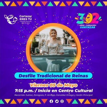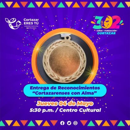 En esta celebración, se entregarán reconocimientos “Cortazarense con Alma”, el 04 de mayo a las 5:30 de la tarde en el Centro Cultural Cortazar, el cual busca galardonar las iniciativas y/o logros de los ciudadanos Cortazarenses en lo individual y/o en lo colectivo para mejorar el tejido social, con el objetivo de formar ciudadanos con liderazgo y responsables con su medio.