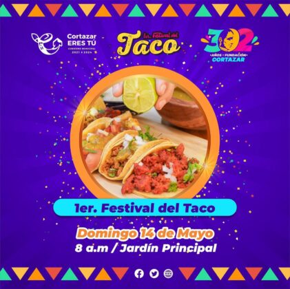 El 14 de mayo se realizará el 1er. Festival del Taco de 9:00 a 22:00 horas, en el Jardín Principal. Este evento gastronómico reunirá a los 30 mejores taqueros que elaboren sus tacos de cabeza, costilla, pastor, campechanos, tripa, bistec, carnitas, tacos sudados y otras sabrosas especialidades. Además, los visitantes encontrarán productos de alrededor de 70 artesanos y emprendedores.