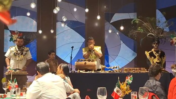 Silao, Gto., 17 de septiembre de 2025.- Presenta a el grupo Llano Grande de Silao, una exposición de piezas arqueológicas de las culturas chupìcuaro y otomí, acompañado de música prehispánica del grupo Necutli, como parte del programa “Orígenes” que se realizó en conocido hotel de la ciudad.