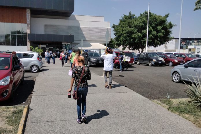 El pequeño estacionamiento de Hacienda se llena rápidamente y los desesperados trabajadores hacen fila en bulevar Campestre y hasta la vuelta con Rio de los Gómez.