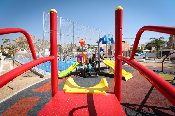 Como parte de este proyecto se construyeron canchas de usos múltiples, una trotapista y un muro de contención, además de la rehabilitación del alumbrado y la instalación de palapas, juegos infantiles y equipos para ejercicio.