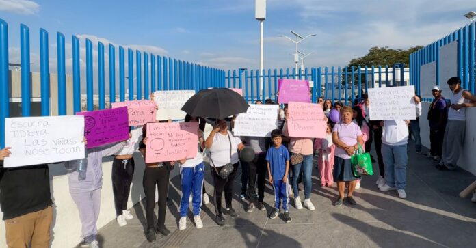Entre tías, hermanos y compañeritas de la secundaria, acudieron al domicilio del implicado, identificado de forma extraoficial como Arturo, de 24 años, como parte de una manifestación.