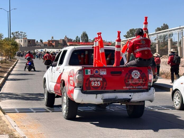 Por tanto, en todo momento los peregrinos sanmiguelenses y caminantes (de Querétaro, Dolores Hidalgo y Comonfort) están siendo asistidos por elementos de policiales, cuerpos de emergencias y grupos de voluntarios; apoyados con unidades de primera respuesta, ambulancias, motocicletas, patrullas y camiones de bomberos.