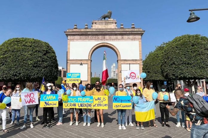 León, Gto., 27 de febrero de 2022.- A veces en silencio, otras en castellano y también en ruteno, la lengua primigenia de Ucrania. Eran unos 200 pero su voz se sumó a la gran mayoría que no quiere un conflicto bélico. Rusia decidió invadir su país, ahí donde viven 45 millones de personas, entre ellos familia directa de quienes salieron hoy a pedir por la paz.