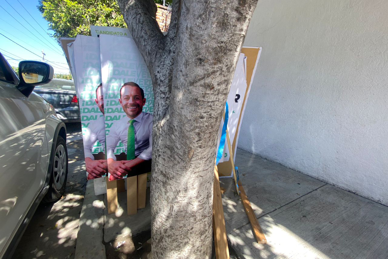 La mañana de este viernes 7 de noviembre, depositaron en la basura, afuera de las instalaciones del Comité Ejecutivo Estatal del partido, la propaganda de Gerardo Fernández González.