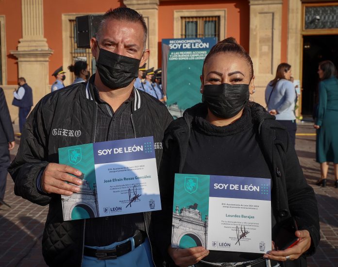 León, Gto., 18 de julio de 2022.- Por impactar de manera positiva en la vida de cientos de leoneses a través del baile, Lulú Barajas y el “Güero Cumbias”, fueron galardonados con el reconocimiento Soy de León.