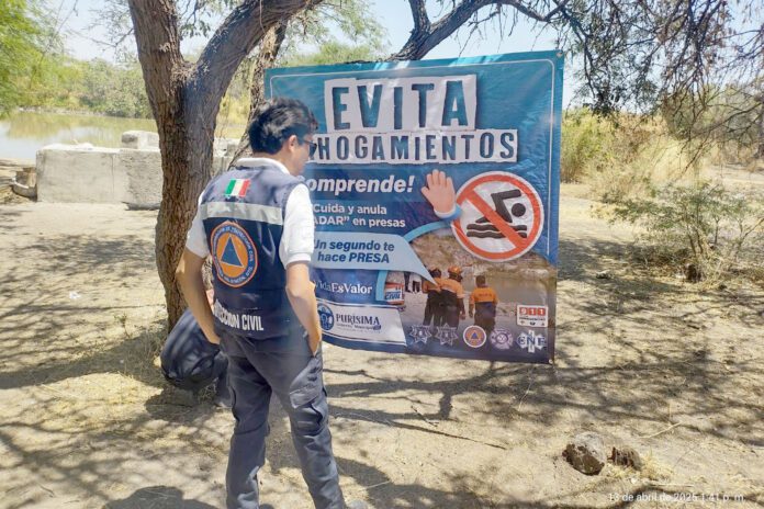 Igualmente, el personal de Protección Civil ha estado distribuyendo, información y colocado estratégicamente señalética, donde invita a evitar introducirse a presas, bordos o arroyos que pongan en riesgo la integridad de la vida de las personas.