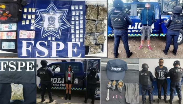 Durante un operativo de vigilancia para inhibir la comisión de delitos, en la comunidad La Cinta en San José Iturbide, se puso a disposición a un masculino con 32 dosis de marihuana; en Ocampo, en la colonia San Juan Bosco, se detuvo a una persona que llevaba consigo 101 dosis de drogas sintéticas y 45 de marihuana; y se reportó a un masculino detenido con 27 dosis de marihuana y 3 de drogas sintéticas en la comunidad de Capitiro en el municipio de Jaral del Progreso.