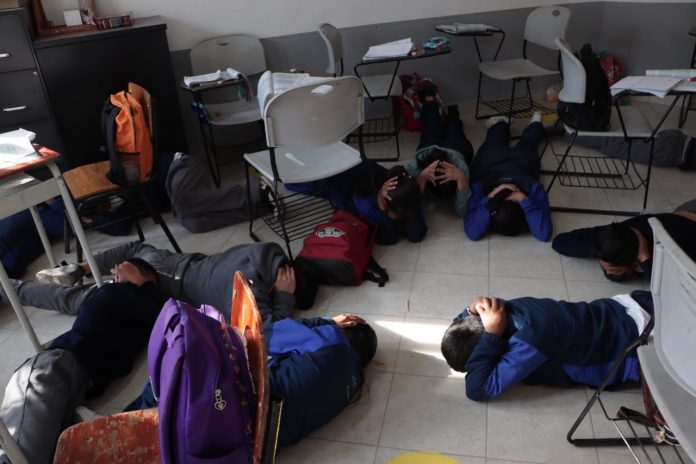 El protocolo de actuación se instruyó en tres sesiones llevadas a cabo esta semana, las cuales terminaron con un simulacro que incluyó a alumnos, maestros y personal administrativo, con el apoyo de los cadetes de la nueva generación de policías.