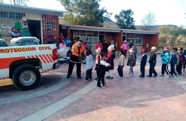 Debido a la llegada de nuevos frentes fríos, elementos de Protección Civil emprendieron la entrega de cobijas en escuelas de educación básica, con la finalidad de apoyar a las familias principalmente de comunidades ubicadas en la zona norte del municipio, donde se presentan las temperaturas más bajas.