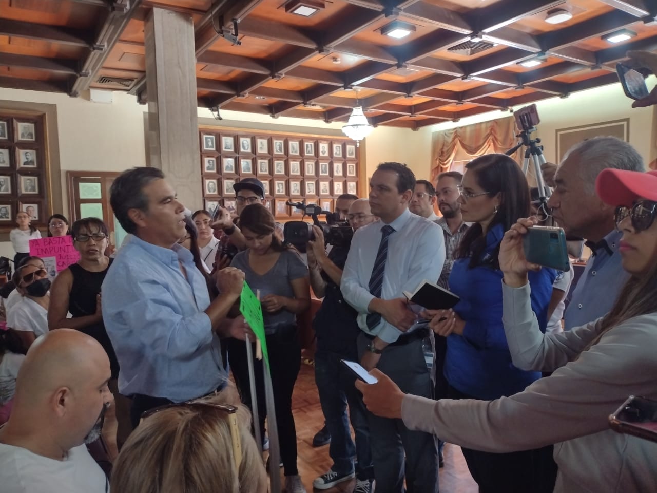 Con pancartas donde también solicitaron la ayuda del gobernador de Guanajuato Diego Sinhue Rodríguez Vallejo para que en este proceso de investigación haya jueces honrrados, llegaron hasta la Presidencia Municipal de León.