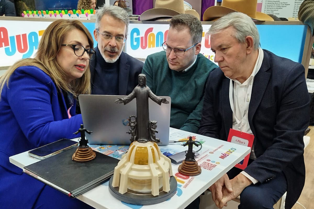 Silao, Gto., 23 de enero de 2026.- En el marco de la Feria Internacional de Turismo (FITUR), en Silao nació una nueva vocación turística al ser integrado a la Red Internacional de Turismo Religioso con la ruta Cristo Rey de la Paz a la Basílica de Santa María de Guadalupe, así lo anunció la presidenta municipal Melanie Murillo Chávez. Lo anterior, tras sostener una reunión con las regidoras y el regidor que participan en este importante evento mundial.